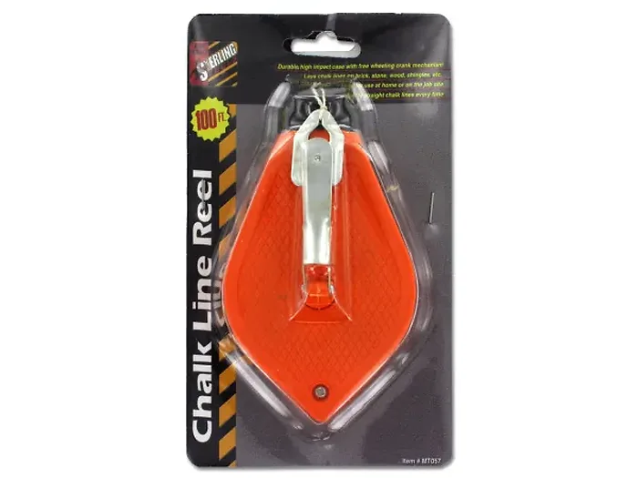 The 100' Chalk Line Reel is your go-to tool for precision marking whether at home or on the job site. Featuring a robust plastic case, this reel comes equipped with a universal hook and an aluminum winding handle for easy usability. Perfect for creating straight line layouts in various applications such as cement construction, parking lot striping, road building, roof repair, and new construction projects. It works seamlessly on surfaces like brick, stone, wood, and shingles, ensuring an accurate chalk line every time.