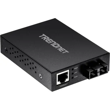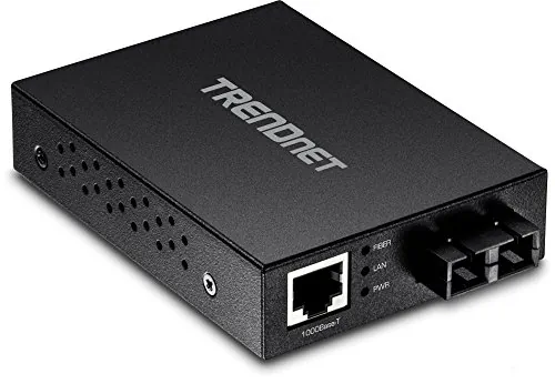 TRENDnet’s TFC-GMSC, Gigabit Fiber Converter, is a Multi-Mode SC-Type fiber converter that converts 10/100/1000 Mbps ethernet to 100/1000 Mbps Fiber and spans distances up to 550 m (1,800 ft.). Ports include a 1000Base-T (RJ-45) port and a 1000Base-SX (SC-Type) fiber port.Building-to-BuildingWell suited for corporate interbuilding and intrabuilding backbones where fiber networking over longer distances is required.Standalone ConverterA durable metal enclosure with included power adapter supports standalone converter installations.CompactSmall and compact metal housing design provides greater installation flexibility.PACKAGE CONTENTS• TFC-GMSC• Quick Installation Guide• Power Adapter (5V DC, 1A)