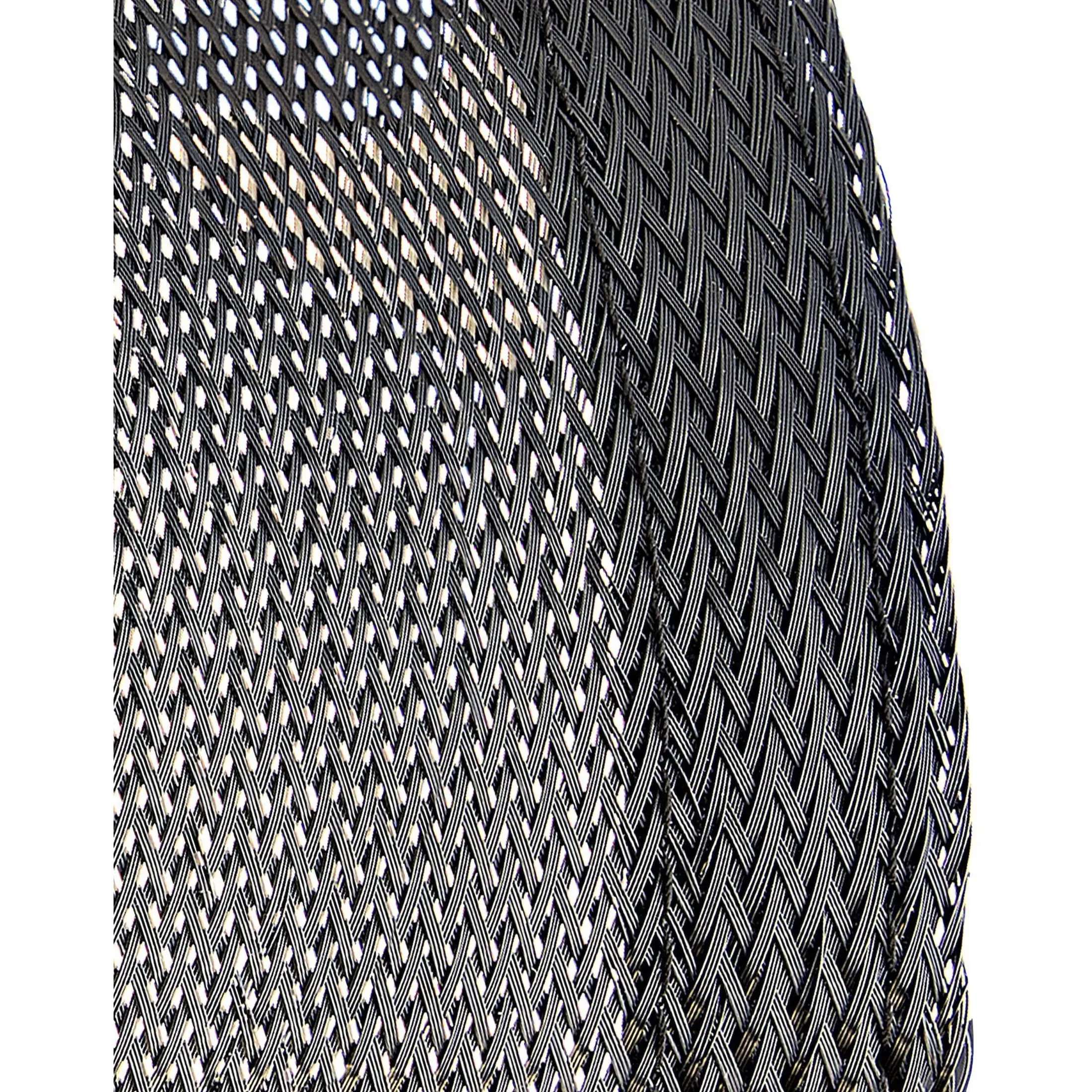 - TECHNICAL SPECIFICATIONS: Length: 10 feet (3 meter) | Min. Diameter: 0.71" (18mm) | Max. diameter: 1.26" (32mm) | Flexible Mesh Design | Polyester & Nylon | RoHS | Black PC Cable Sleeve/Hider