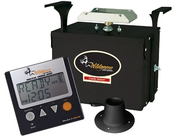 Wildgame Innovations 12V Digitial Power Control Unit:12 volt digital power control unitIncludes digital timer, power control unit, high-torque motor, spinner plate, housing and mounting hardwareBlack powder-coated galvanized steel constructionComes with adjustable mounting brackets (screws included)Unique stainless steel gated spinner plate designCircuit board is fully-enclosed in a weather-resistant housing with a protective gasketLarge, silicone rubber buttons are weather-resistant and easy to useThe wiring harness is molded into the gasket to ensure a weather-tight sealDrop funnel and bolt kit includedComes with operational manual and the operating instructions are clearly printed on the back side of every timerModel# TH-12VD digital feeder timer