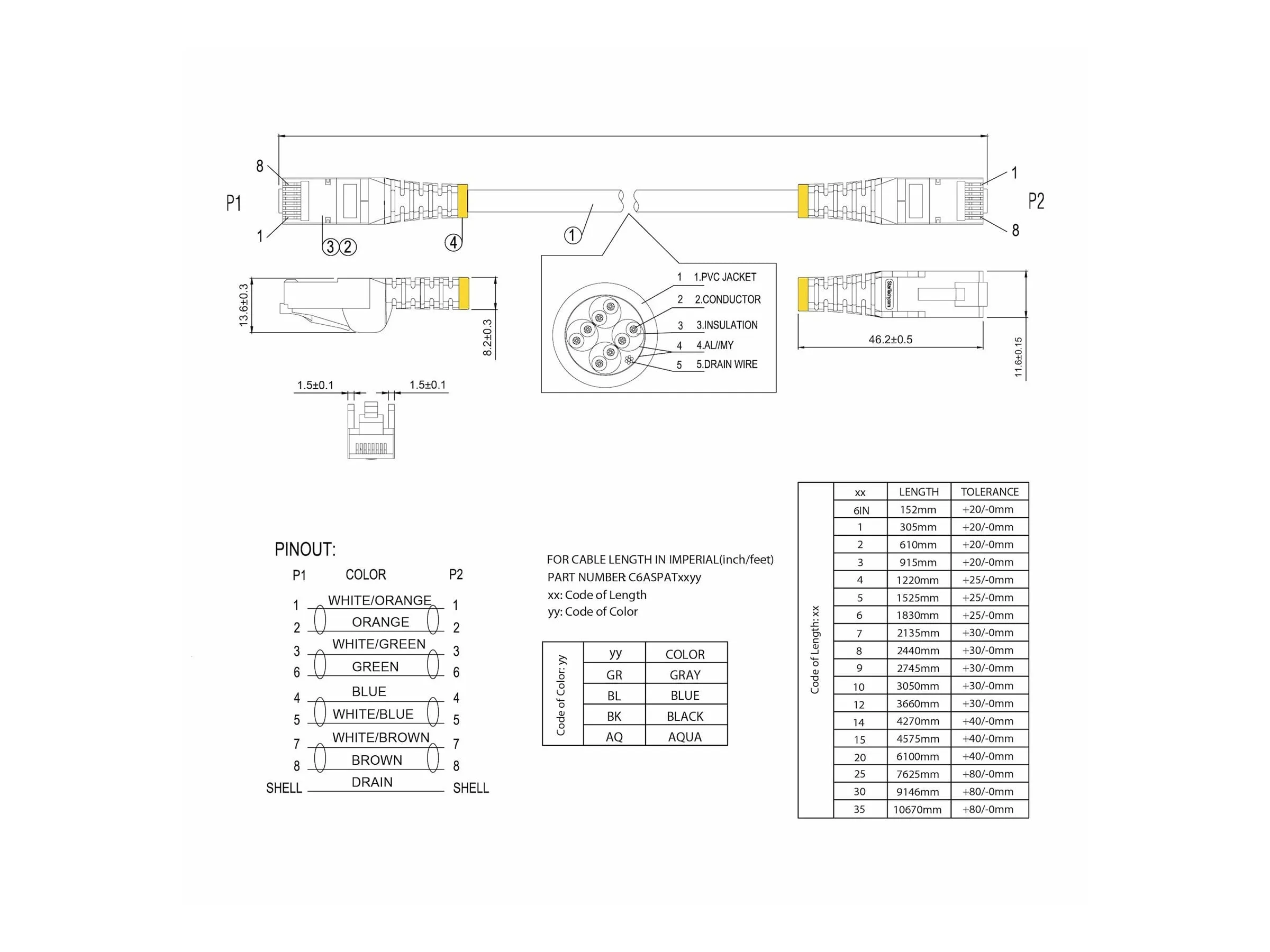 For easier network installations, our Cat6apatch cables are available in a wide variety of lengths and colors. This ensures you have the right size of cable available when you need it and it lets you color code your connections for a more organized setup.