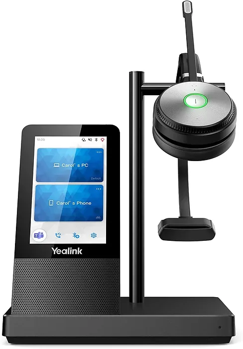 Unified Communications Premier DECT Wireless HeadsetDECT Headset: * Monaural Ear (single ear) over-the-head Headset* Busylight on headset* Leather Ear Cushions* Yealink Acoustic Shield TechnologyDECT Base:* UC Button* Input ports: 1x USB 3.0 Port, 2x Bluetooth* 4 inch touch Screen* Speakerphone* 2-ports USB Hub* Power Adpater* Support Yealink Wireless Charger WHC60(Optional)* 2.5mm jack for Busylight BLT60(Optional)