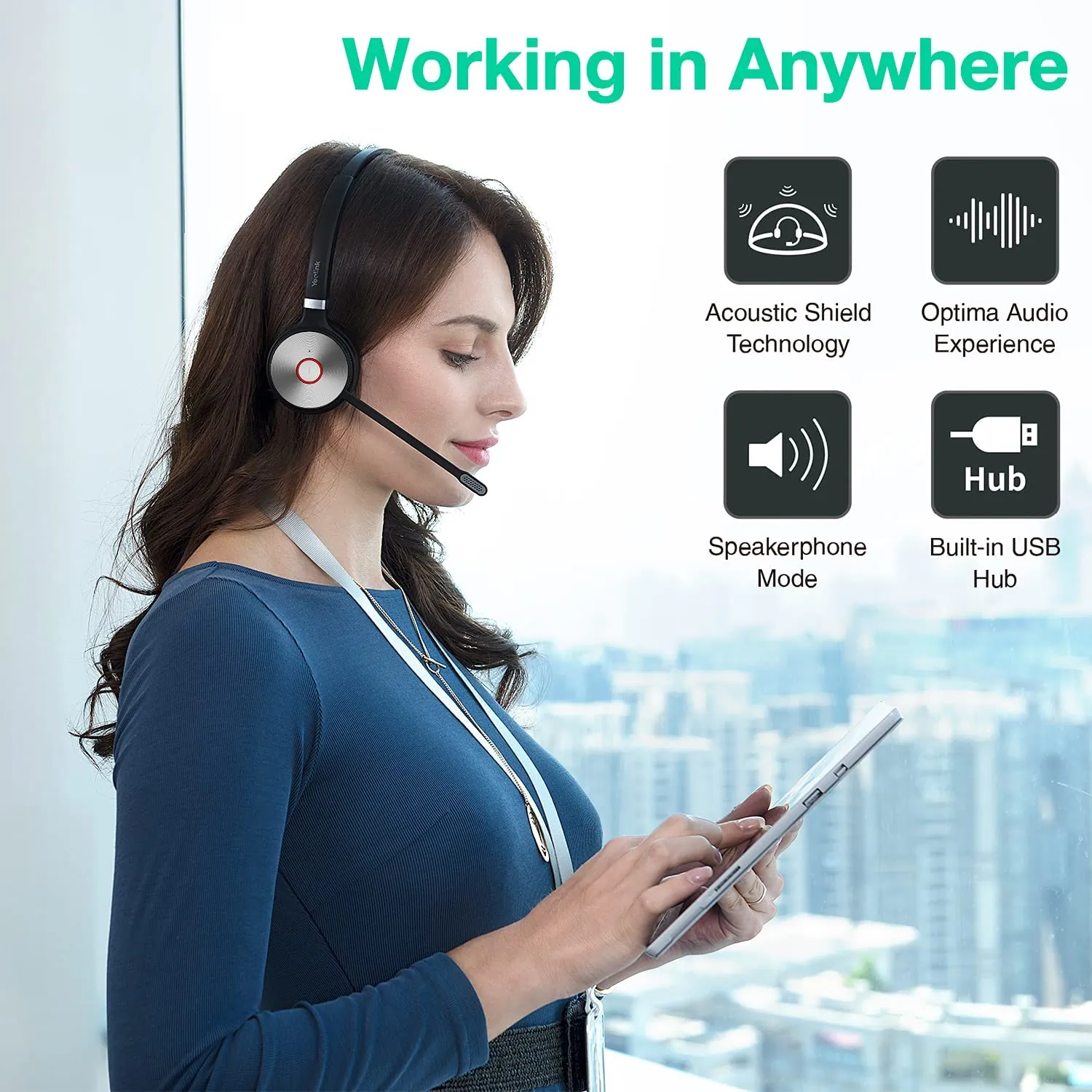 - Enhance Productivity: Providing a visual cue and indicator that help to reduce distractions and eliminate interruptions, which promises your ideal productivity. With the light on the headset or BLT60 on the desk turning red, people around you would know that you are on the phone, instead of interrupting you unknowingly. Just stay focused on conversation, for higher efficiency, for better collaboration. * External Busylight(BLT60) available as an optional accessory.