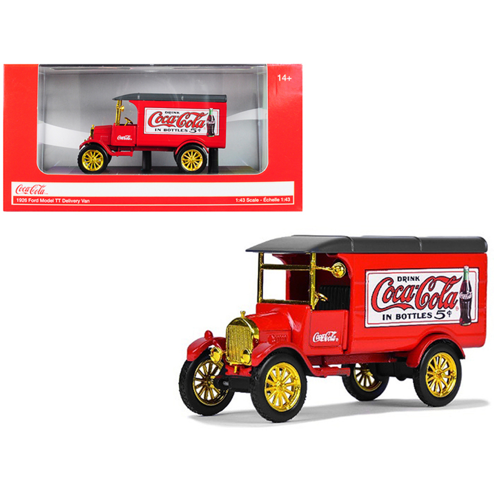 - Brand new 1/43 scale diecast model of 1926 Ford Model TT Delivery Van "Coca-Cola" Red with Gold Wheels die cast model by Motorcity Classics.