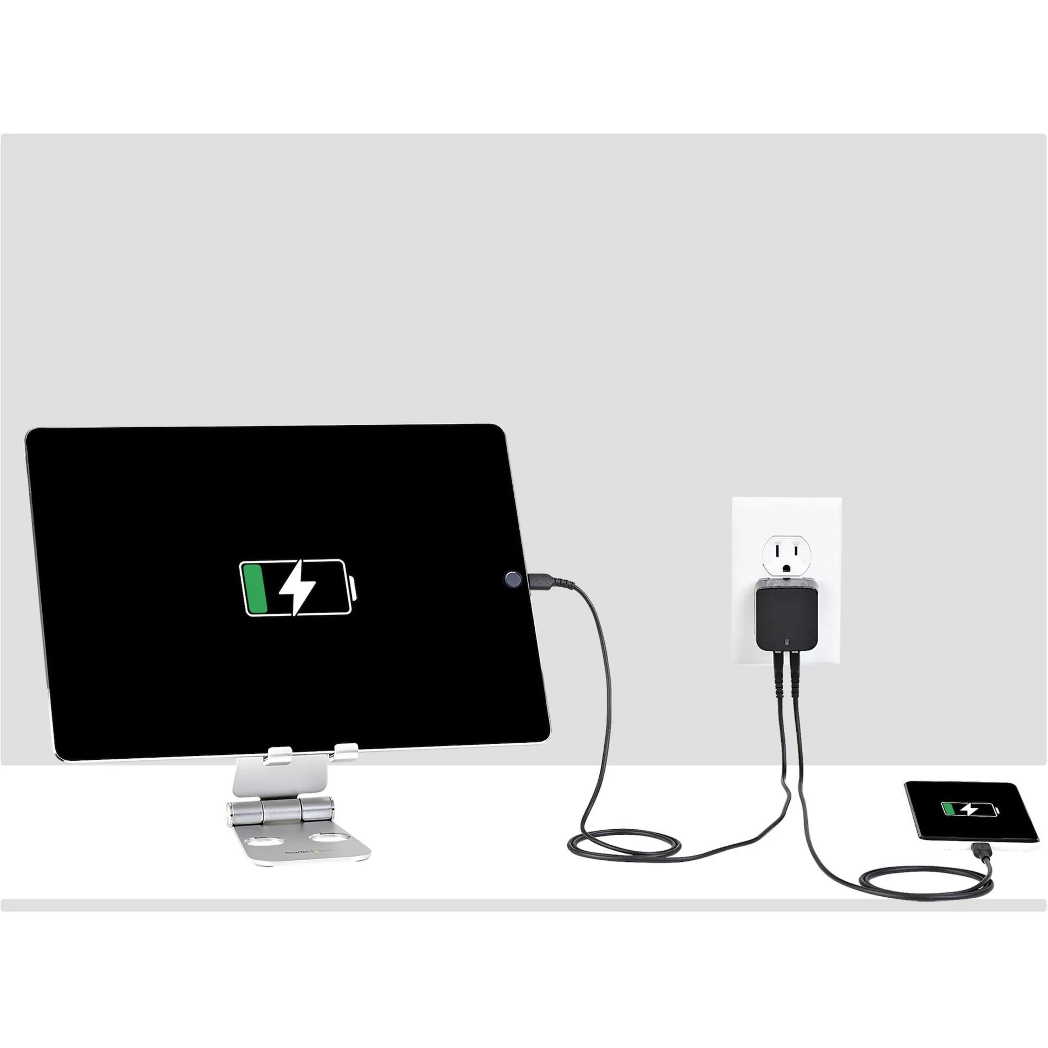 Plus, you can charge two of your devices at the same time. This dual-port USB wall charger lets you charge two mobile devices at once, using a single USB wall charger, so you won't have to wait until one of your devices is fully charged before charging another.