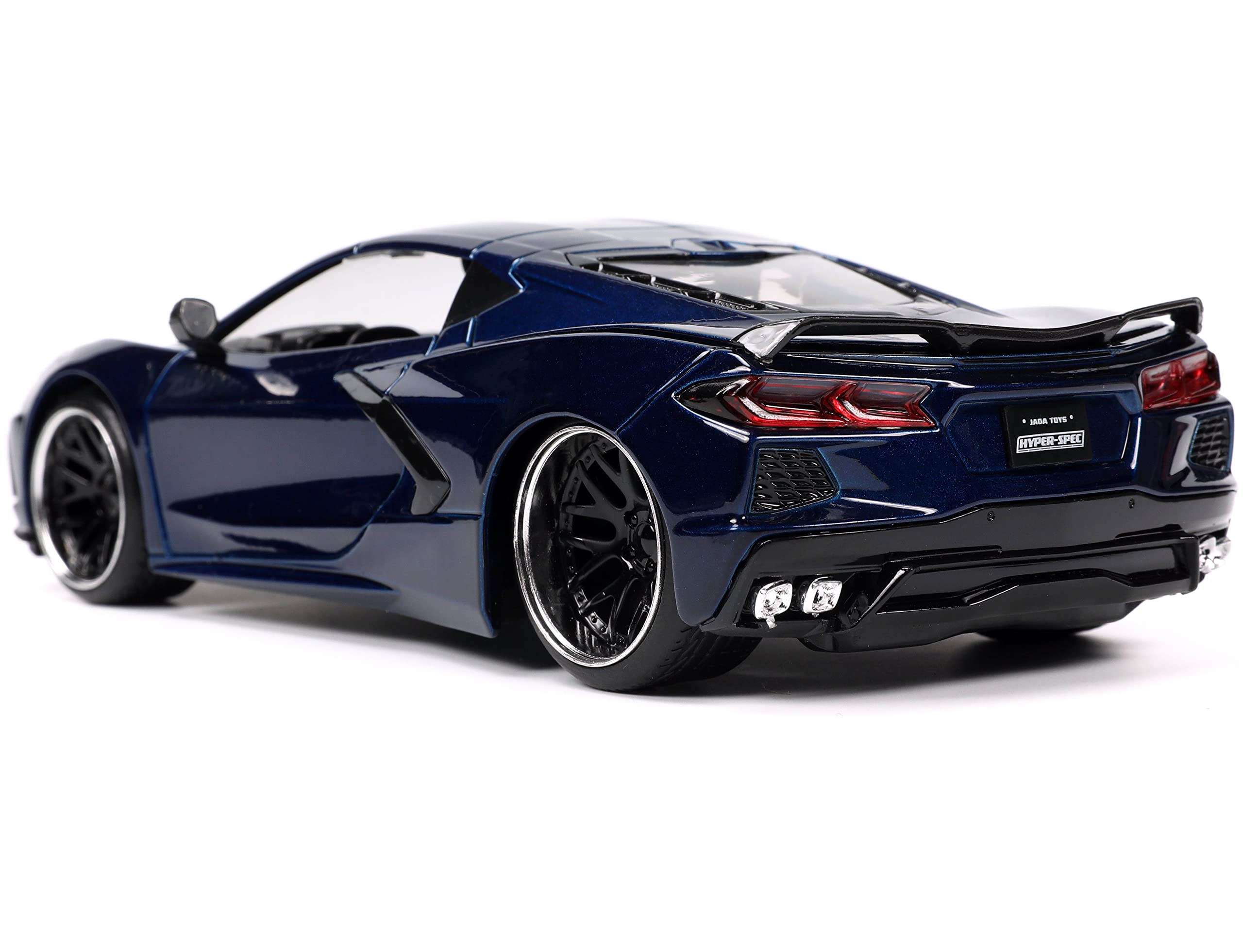 - Brand new 1/24 scale diecast car model of 2020 Chevrolet Corvette Stingray C8 Dark Blue Metallic "Hyper-Spec" Series die cast model car by Jada.