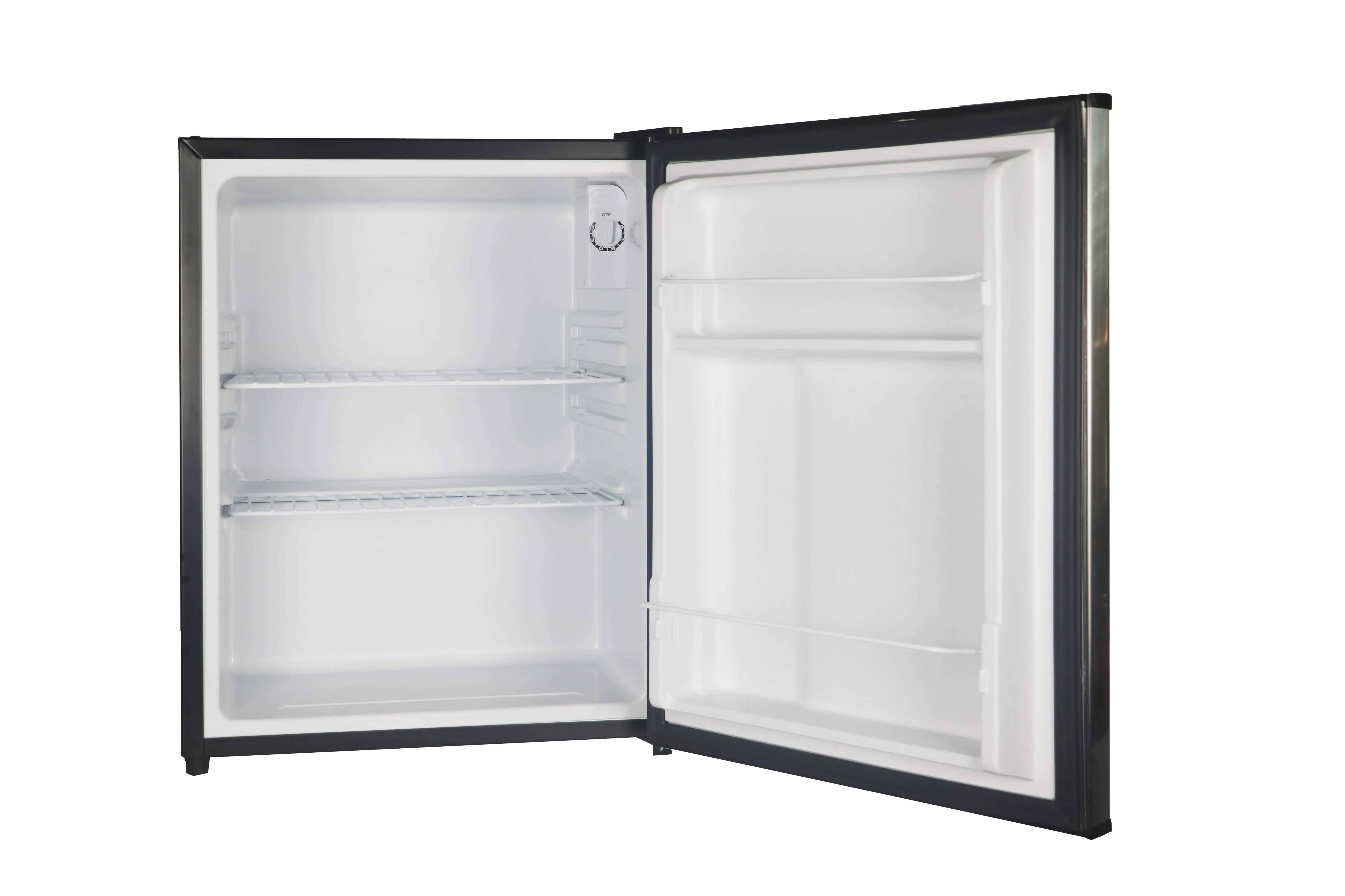 The Magic Chef 2.4 cu. Ft. refrigerator is sleek and compact enough to fit into almost any small space and provides easy access to your favorite foods & beverages with the invisible door handle and the in-door storage shelves. This all-refrigerator unit excludes the traditional freezer compartment for more usable space. And the compressor cooling system allows for consistantly reliably cool temps. Stainless Steel/Black *Energy-Star rated *Reversible door for maximum flexibility *Removable wire shelf *Flush-back design for close fit against walls