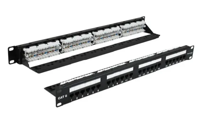 The 24-Port CAT6 Rackmount Patch Panel is designed for high-performance networking. It provides a reliable and organized solution for managing network connections. This patch panel mounts easily in racks and cabinets, ensuring your network setup remains tidy and efficient.
