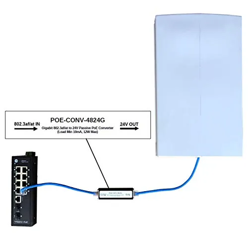 The 24V 12W Passive GigE Converter is designed to deliver reliable power and data connectivity over long distances. Compatible with 802.3AT and 802.3BT standards, this device is perfect for various applications requiring efficient power solutions.