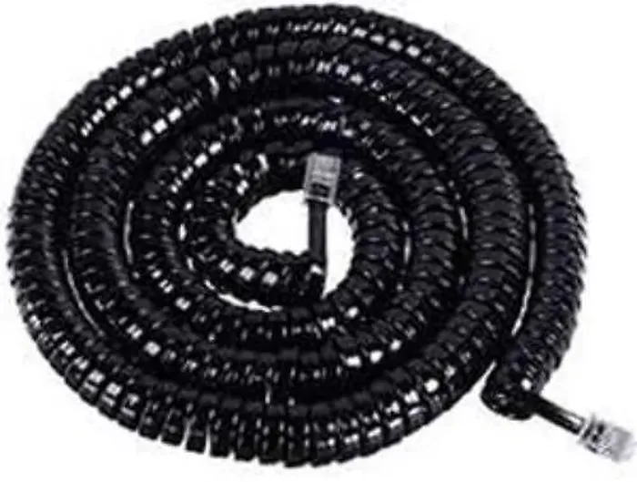 This 25-foot handset cord features a classic black design, perfect for connecting your telephone handset. With a coiled construction, it provides flexibility and convenience while maintaining a tidy appearance.