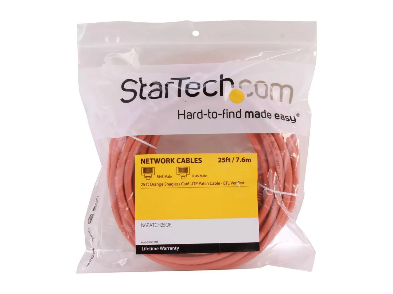 StarTech.com 25ft CAT6 Ethernet Cable - Orange Snagless Gigabit - 100W PoE UTP 650MHz Category 6 Patch Cord UL Certified Wiring/TIA