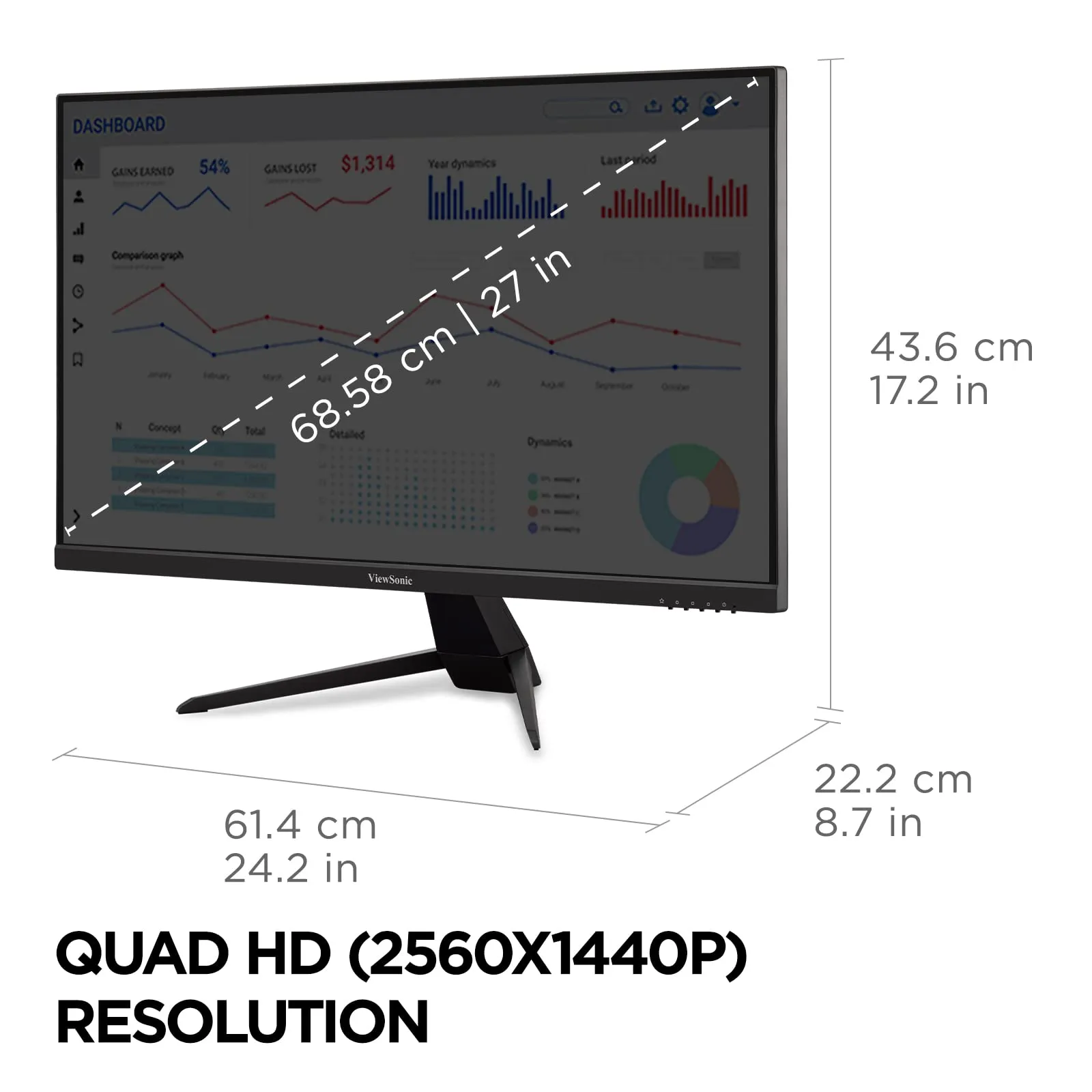 Viewsonic VX2767U-2K 27in 2k Qhd Thinbezel Ips Monitor With Usbc Hdmi And Displayport.