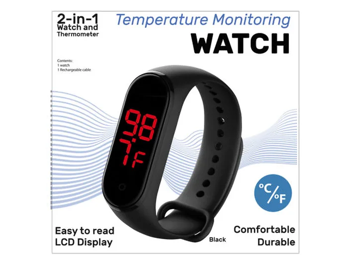 Bulk HR455 2in1 Wristwatch Thermometer With Adjustable Band