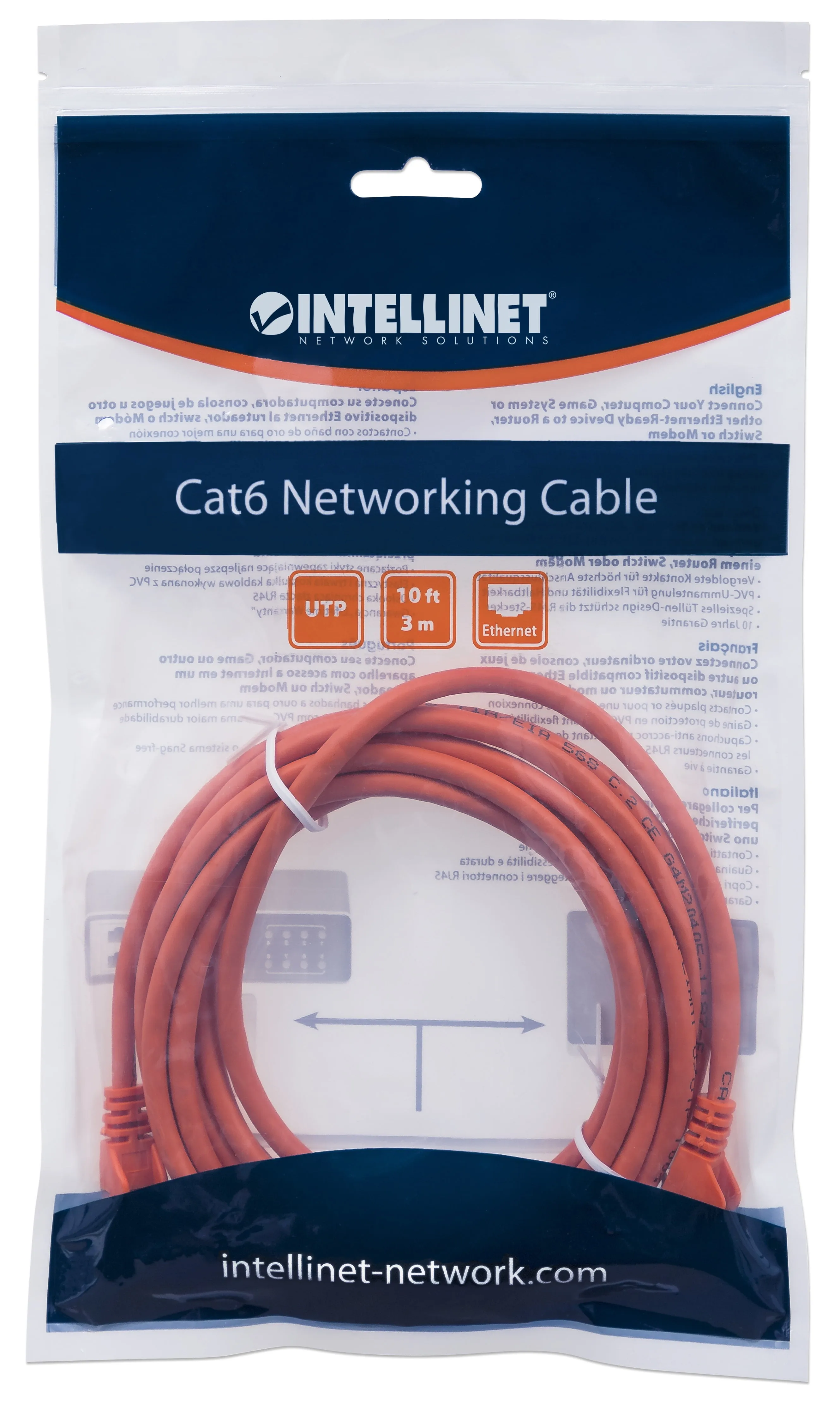 Intellinet 342247 3 Ft Orange Cat6 Snagless Patch Cable