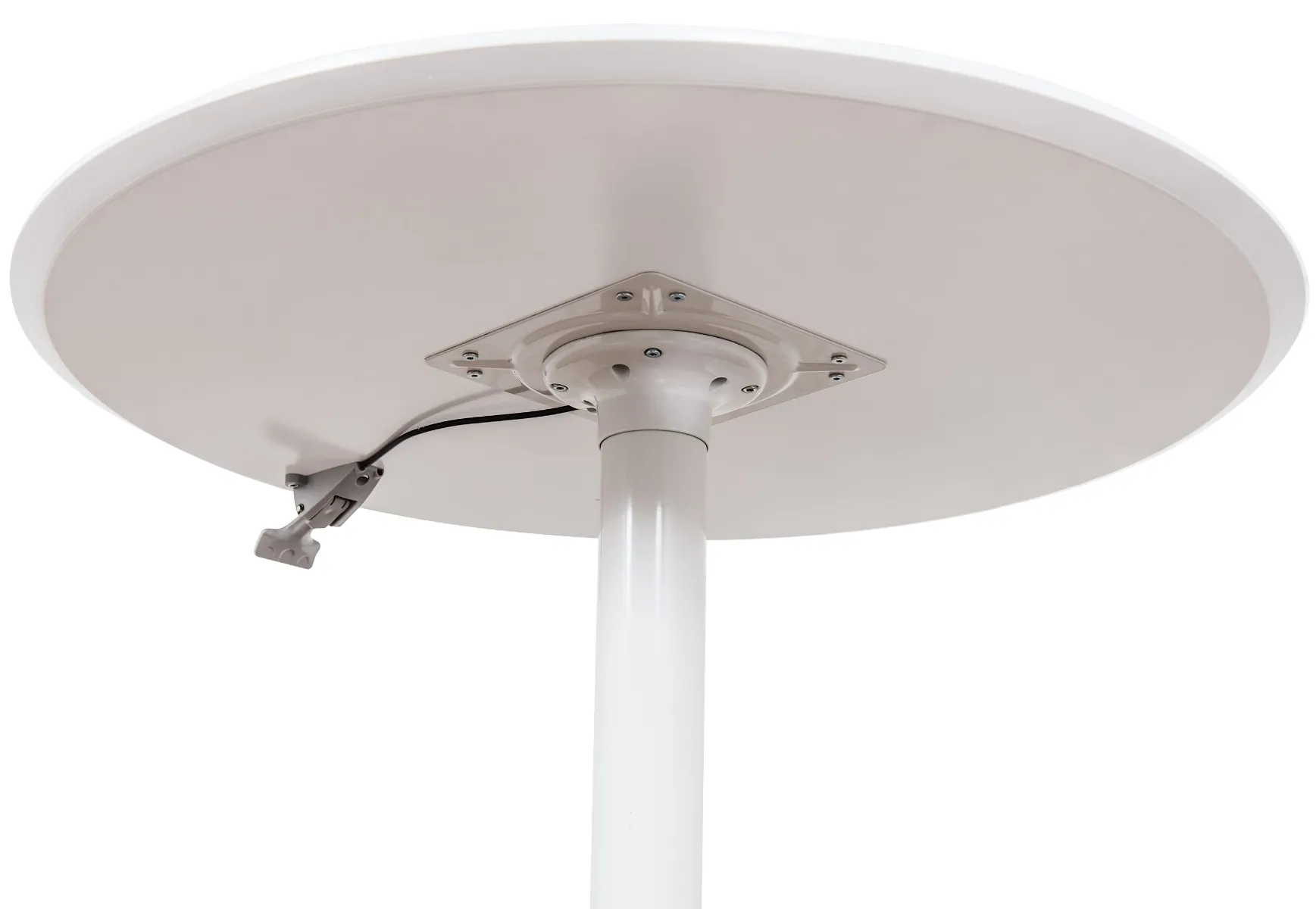 • 36" round white tabletop with contoured edges