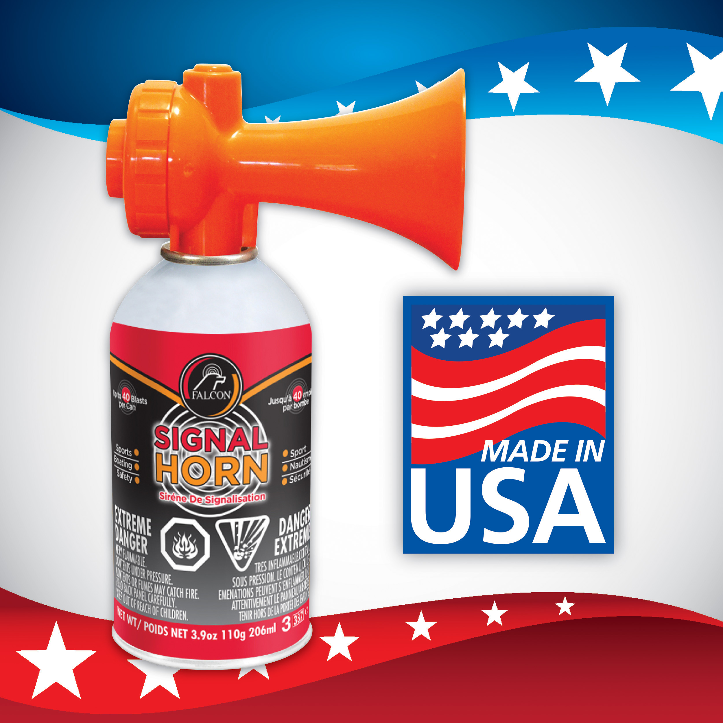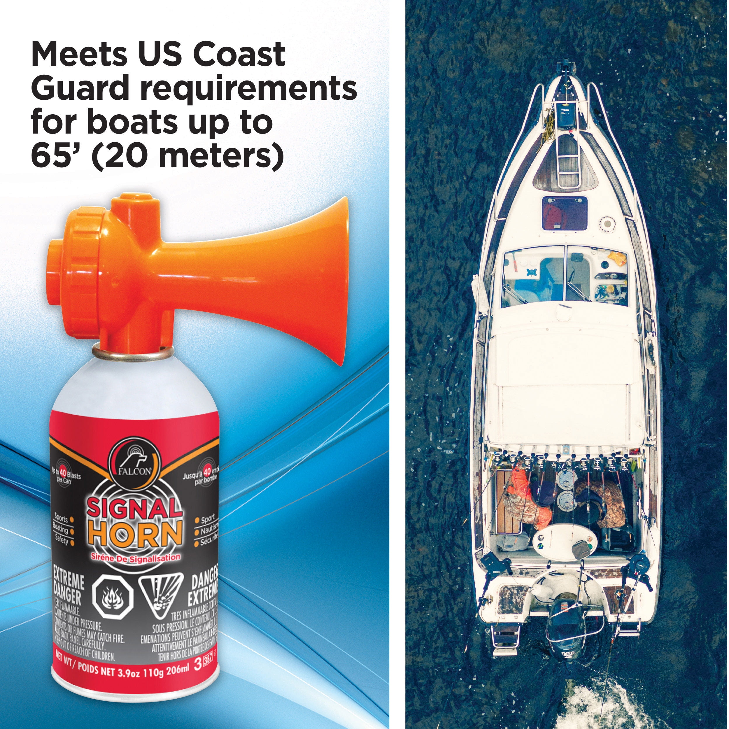• Ideal option for uses where flammability isn't a major concern including sporting events, paddle boating, and hiking;• Provides a piercing 120 dB blast at up to 10 ft. ;• Meets U.S. Coast Guard requirements for boats up to 65 ft. (20 meters) ;• Provides up to 40 blasts per can;