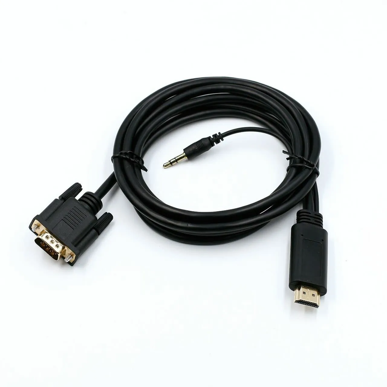 This 3FT HDMI to VGA Active Adapter allows you to connect your HDMI-enabled devices to VGA displays. It features a 3.5mm audio jack for audio output, ideal for connecting laptops to projectors or monitors.