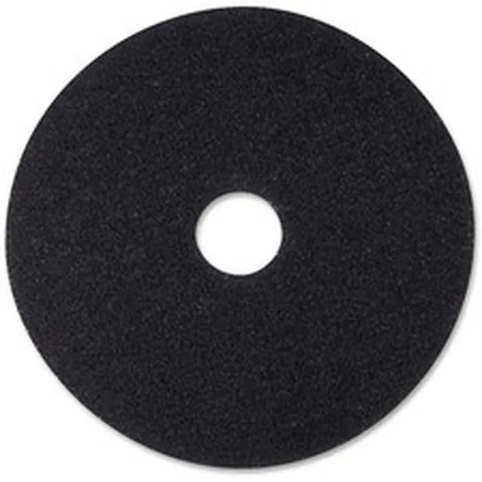 Stripping pads remove all finish, sealer and contaminants from the floor surface. Use with water-based, floor-finish stripping solutions to remove old, soiled floor finishes and sealers at the start of a maintenance program and at times when scrubbing will not achieve the desired result. The Black Stripper Pad 7200 is also used to clean heavily soiled, hard surface floors, such as concrete, with appropriate cleaning chemicals. 20" diameter pads are designed for use in rotary or automatic equipment on low speeds from 175 to 600 RPM. Stripping pads quickly and thoroughly remove old finish, dirt and buildup. Each pad is made of nylon and polyester fibers in an open, textured nonwoven construction. Abrasive particles are dispersed throughout and bonded to the nonwoven construction with a durable adhesive.