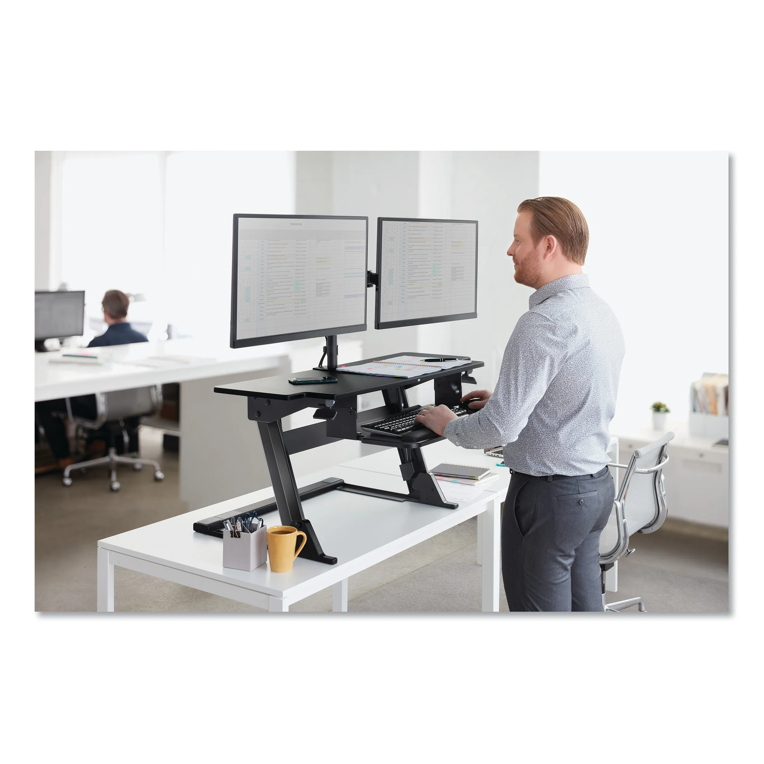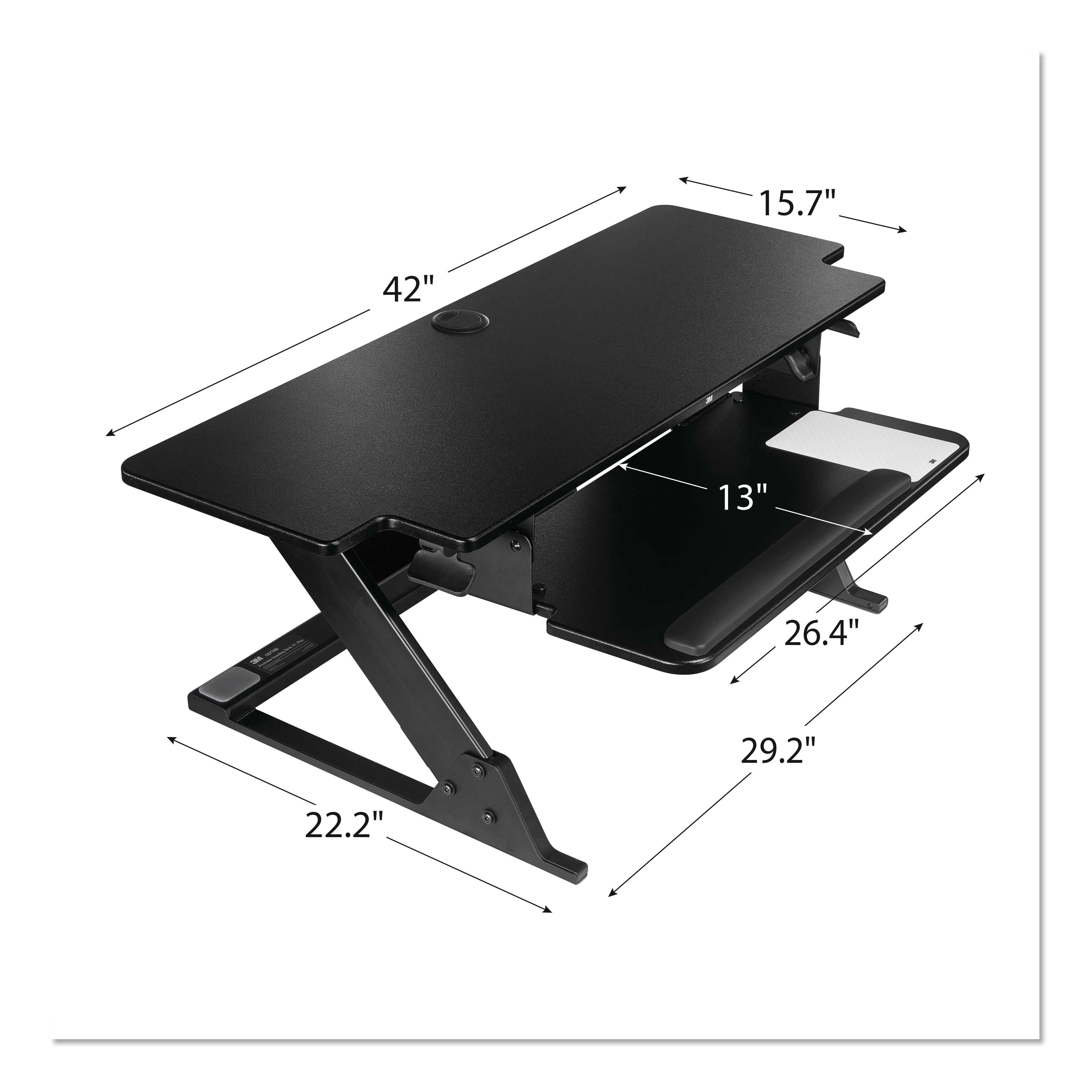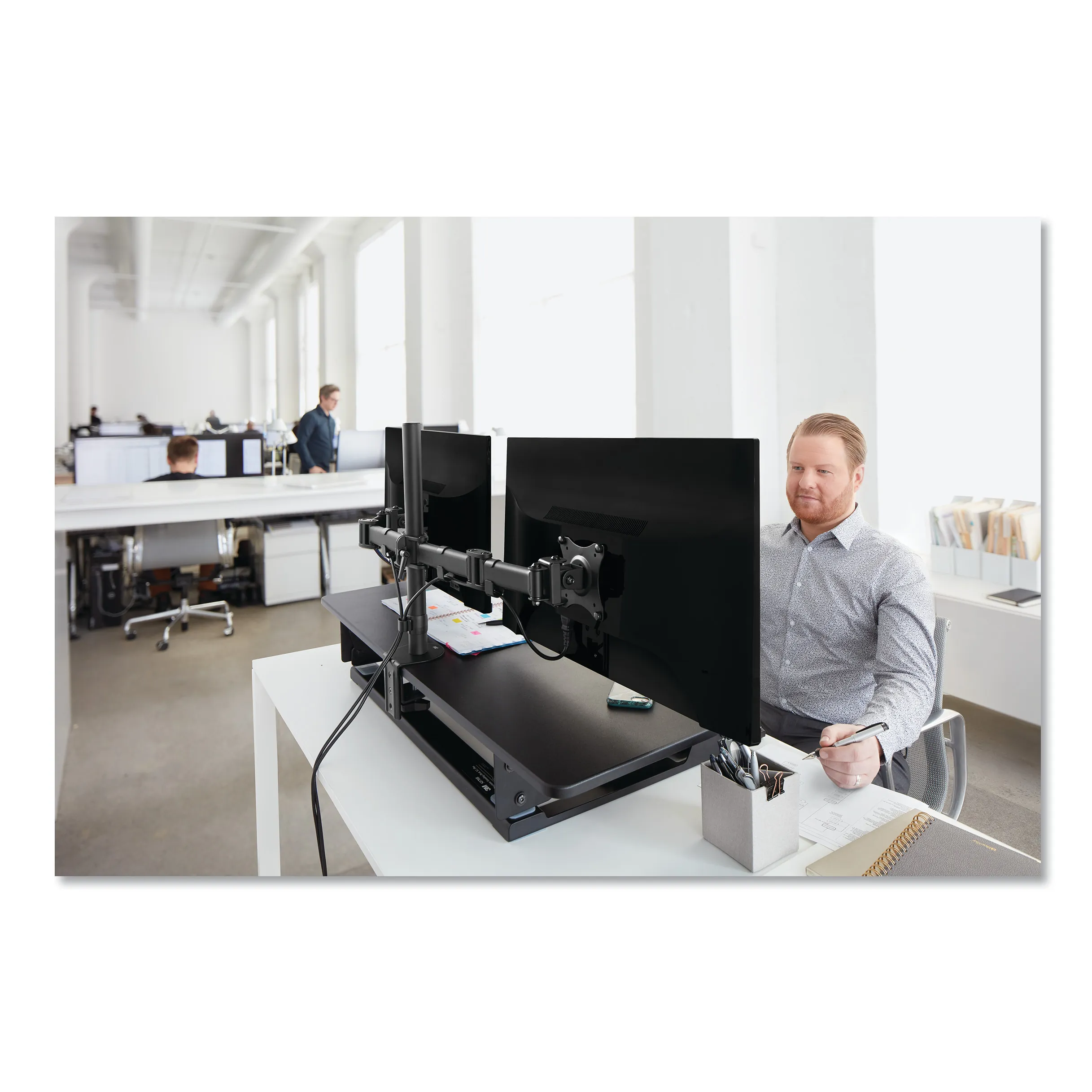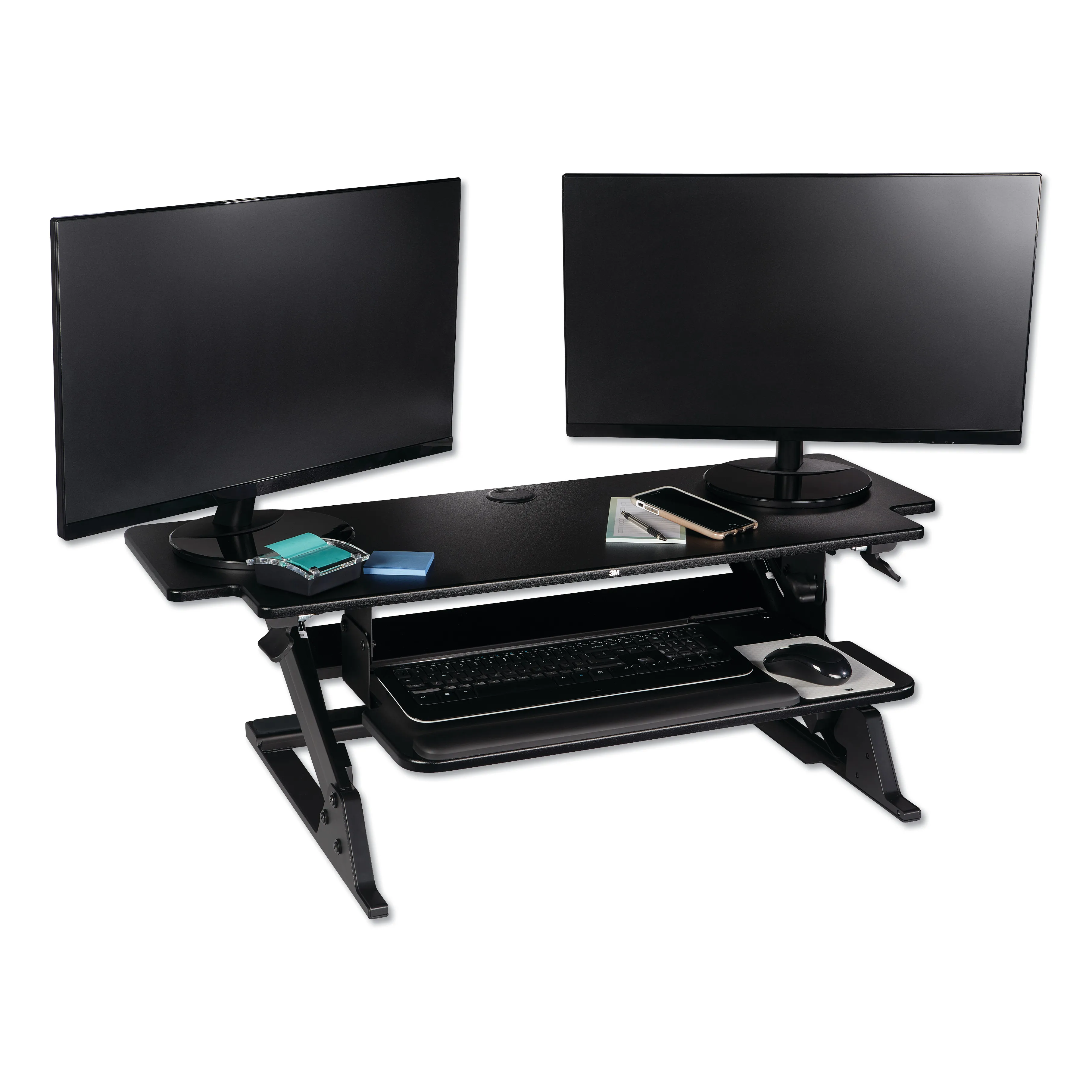 Gas assisted continuous height adjustment allows you to move smoothly and quietly between sitting and standing positions in seconds. Height adjustment range from 6.2'' to 20'' above the desk accommodates a wide range of users. 10°/-10° keyboard surface tilt to help achieve comfortable typing position. Primary work surface is large enough to fit two 24'' monitors and holds up to 35 lb. Includes 3M Gel Wrist Rest for your keyboard and 3M Precise Mouse Pad. Pre-assembled solution eliminates need for installers.