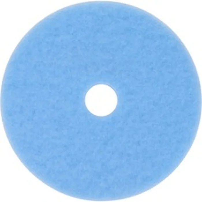 Sky Blue Hi-Performance Burnish Pad 3050 restores gloss to dull floors. It is designed for frequent burnishing with less dust and minimizes burning, point buildup and swirl marks. Pad is optimized for use on softer floor finishes typically used in retail environments and burnished frequently. Use with machine speeds from 1500 to 3000 RPM. Polyester fibers offer a textured, nonwoven construction. Center hole diameter is 3-3/8".