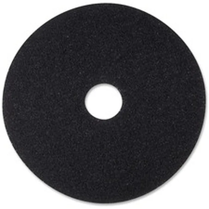 Stripping pads remove all finish, sealer and contaminants from the floor surface. Use with water-based, floor-finish stripping solutions to remove old, soiled floor finishes and sealers at the start of a maintenance program and at times when scrubbing will not achieve the desired result. The Black Stripper Pad 7200 is also used to clean heavily soiled, hard surface floors, such as concrete, with appropriate cleaning chemicals. 12" diameter pads are designed for use in rotary or automatic equipment on low speeds from 175 to 600 RPM. Stripping pads quickly and thoroughly remove old finish, dirt and buildup. Each pad is made of nylon and polyester fibers in an open, textured nonwoven construction. Abrasive particles are dispersed throughout and bonded to the nonwoven construction with a durable adhesive.