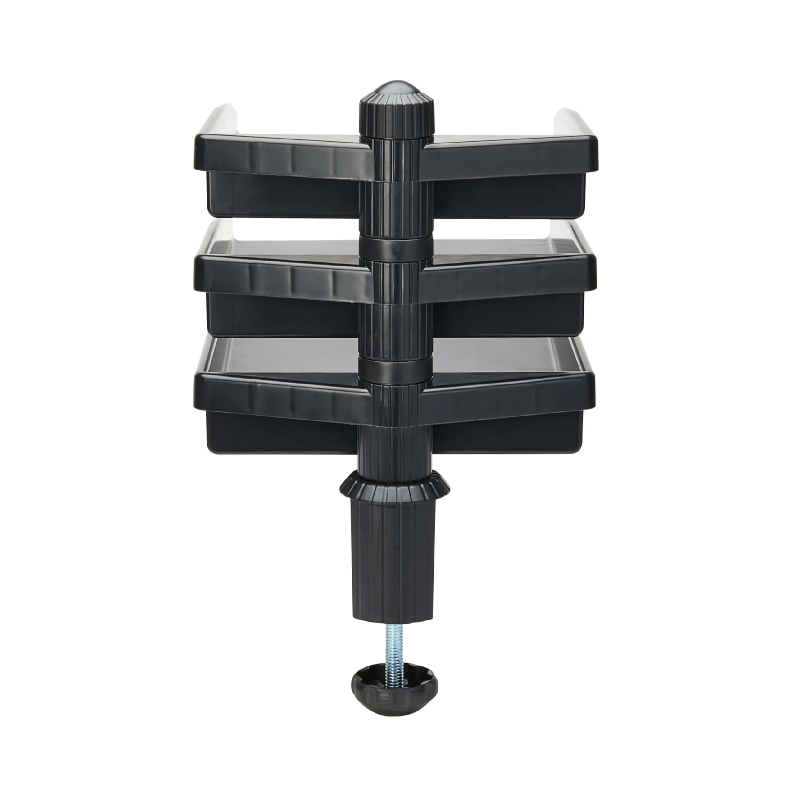 This versatile 3-tray document holder allows users to organize documents efficiently on their desk. Designed with a sturdy desktop clamp, it accommodates up to 8.5 x 11 inches, making it perfect for office or home use. The TAA-compliant design ensures quality and durability.