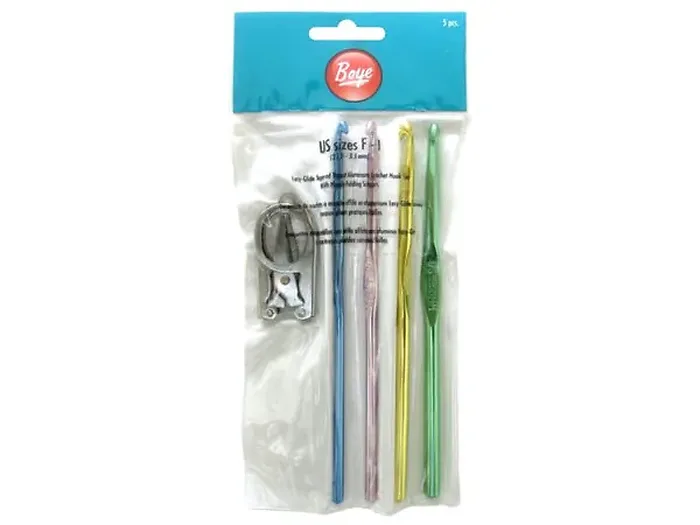 This 4-piece anodized aluminum crochet hook set is designed for both beginners and experienced crocheters. Each hook is lightweight yet sturdy, offering a comfortable grip and smooth stitches. The set includes a pair of handy folding scissors for easy yarn cutting on the go.