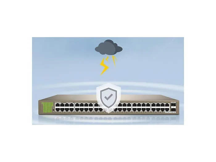 The Tenda SWT TEG1050F is a high-performance unmanaged gigabit switch designed for seamless integration into your network. With 48 auto-sensing gigabit Ethernet ports, it provides high-speed connectivity for multiple devices, making it ideal for small to medium-sized businesses.