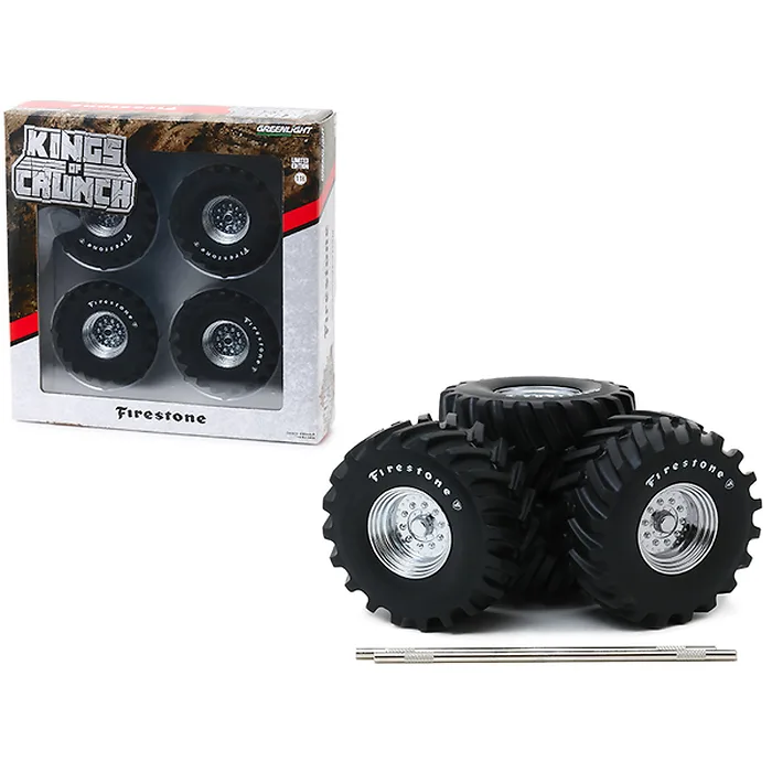- Brand new 1/18 scale 48-Inch Monster Truck "Firestone" Wheels & Tires 6 piece Set "Kings of Crunch" by Greenlight.