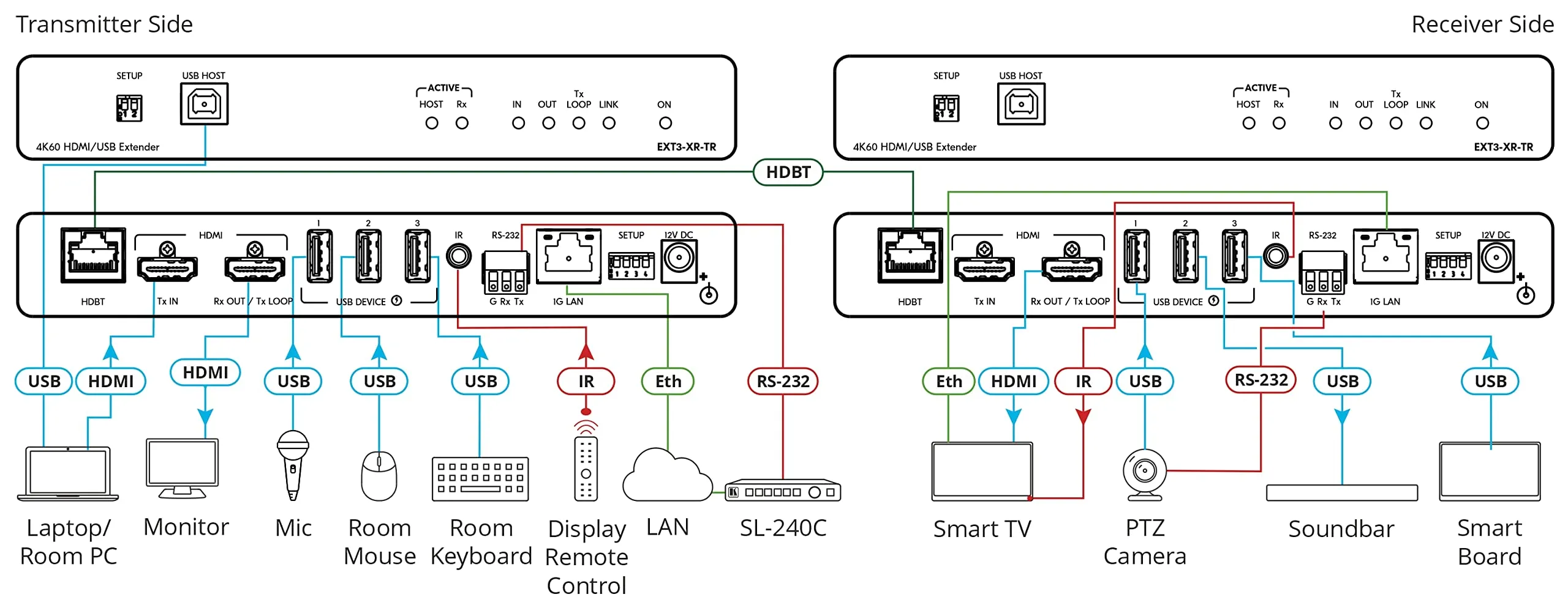 (EXT3-XR-TR) 4K60 4:4:4 KVM TRANSCEIVER OVER EXTENDED-REACH HDBT 3.0