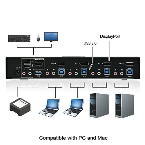 Iogear GCS1934 4port Displayport 1.2 Kvmp Switch With Usb 3.1 Gen1 Hub And Audio Taa Complian