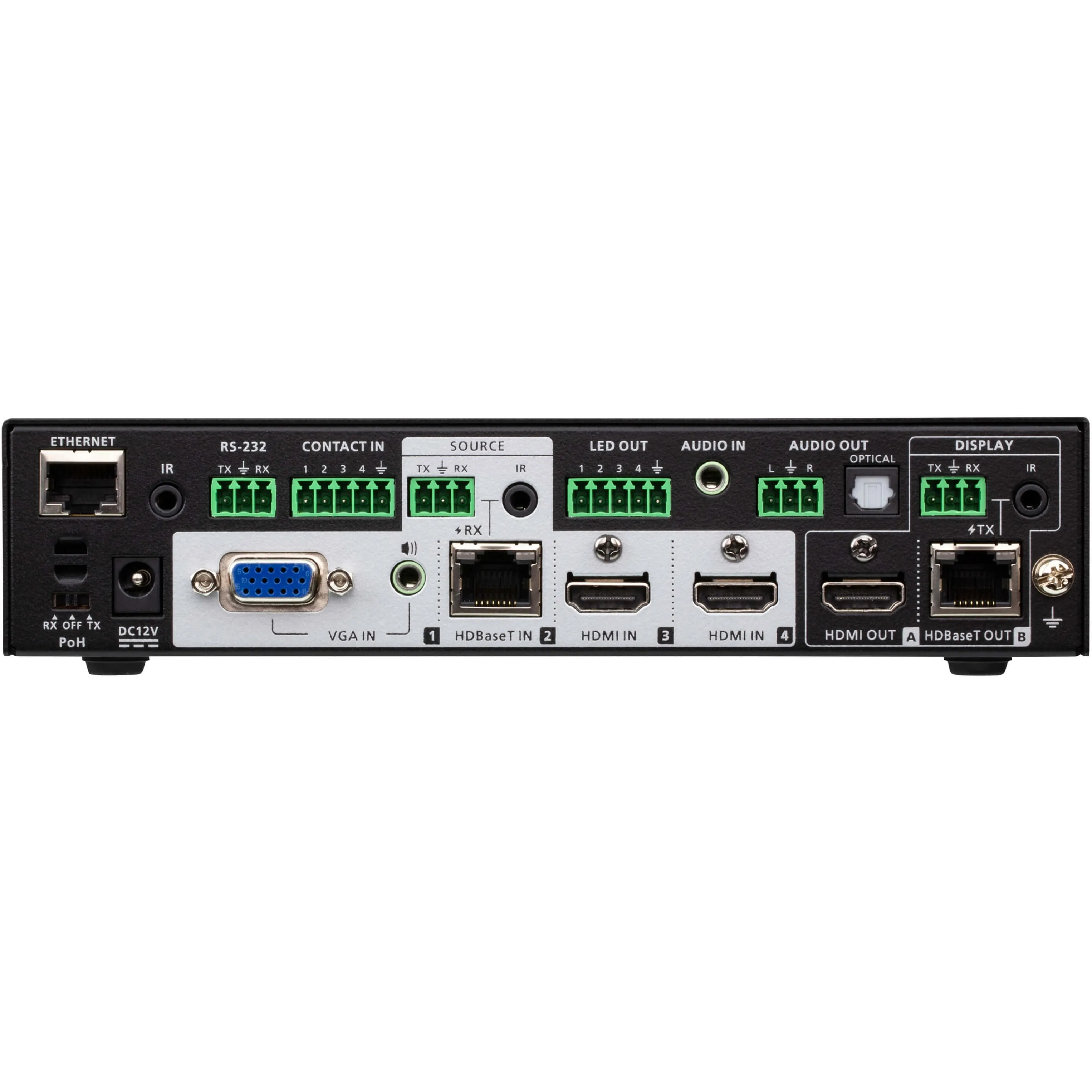 The 4X2 4K Presentation Matrix Switch is a high-performance video switcher that allows for seamless connections and management of multiple video sources. It features HDBaseT technology, enabling long-distance transmission of 4K video, audio, and control signals over a single cable.