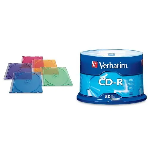 Great for travel, Slim Cases prevent your CDs and DVDs from being scratched or broken during transport. Assortment of colors includes blue, green, orange, purple and pink so you can color-code your data, music, movies and more. Cases are made of plastic and are thinner and lighter than standard jewel cases.