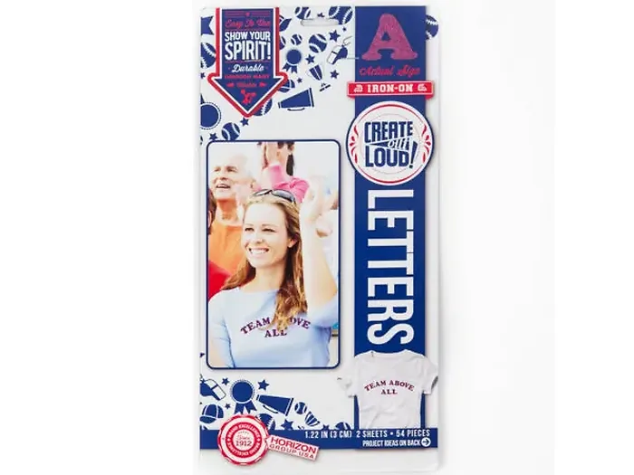 Each pack features two sheets of letters, easy-to-follow instructions, and a handy ruler guide to ensure precise application. The package comes neatly enclosed in a hanging panel with a sample letter visible for your reference. The overall package dimensions are approximately 12.25" x 6.35", with each letter measuring about 1.25" tall.