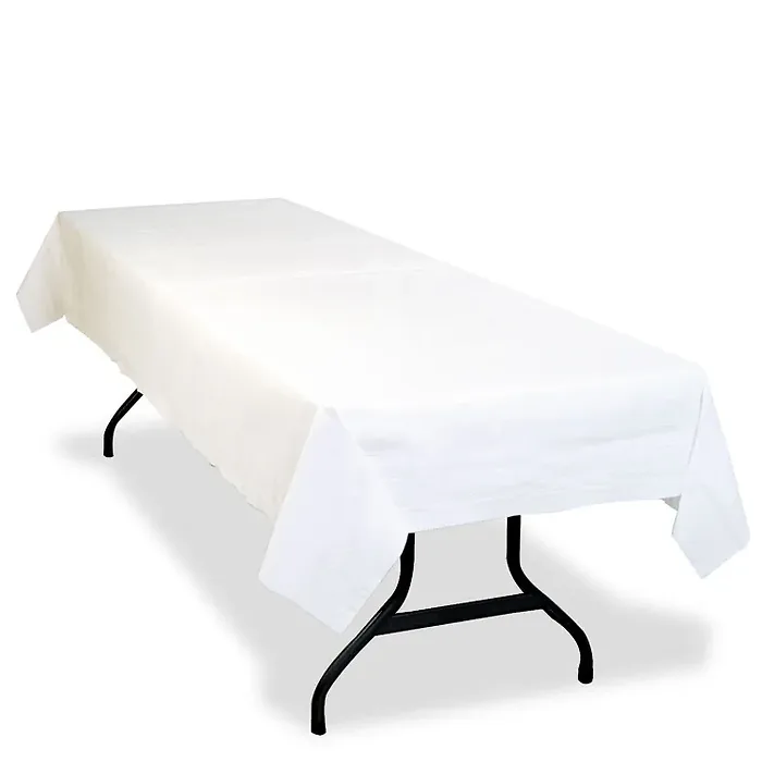 Enhance your dining experience with our premium white tissue table covers. Measuring 54 x 108 inches, these covers are perfect for any occasion, including parties, picnics, and special events. Each pack contains six table covers, ensuring you have plenty for all your gatherings.
