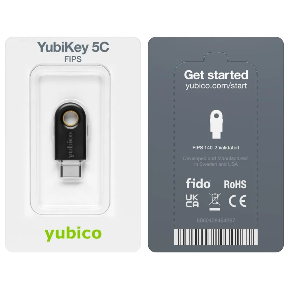 Plug the Yubico 5C FIPS Security Key into your device’s USB-C port. It instantly verifies your identity with hardware-based cryptography, blocking phishing attacks and fake logins. No need to enter codes or use mobile apps. It works seamlessly with services that support FIDO2 and U2F, delivering strong, passwordless or second-factor authentication.