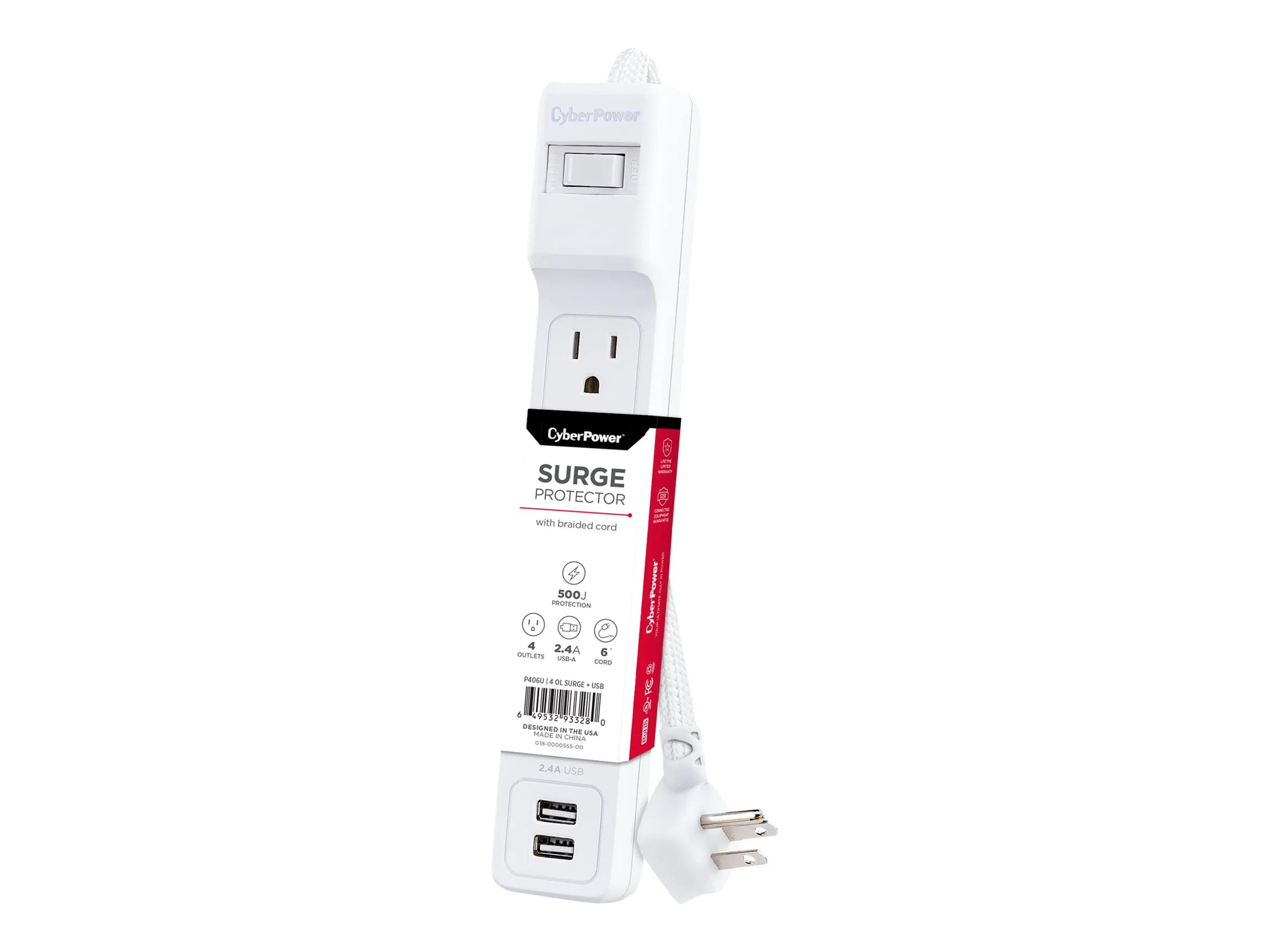 Cyberpower P406U 6 Ft Power Cord With 2 Usba Charging Ports