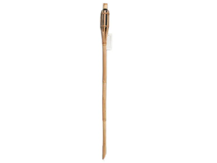 The 60-Inch Bamboo Wicker Tiki Torch is a perfect addition to any luau or beach-themed party. Featuring a stylish design, it comes equipped with a black refillable canister that holds up to 4 ounces of oil and provides a burn time of approximately four hours. The top screws off easily for convenient refilling. Please note, these torches do not come pre-filled.