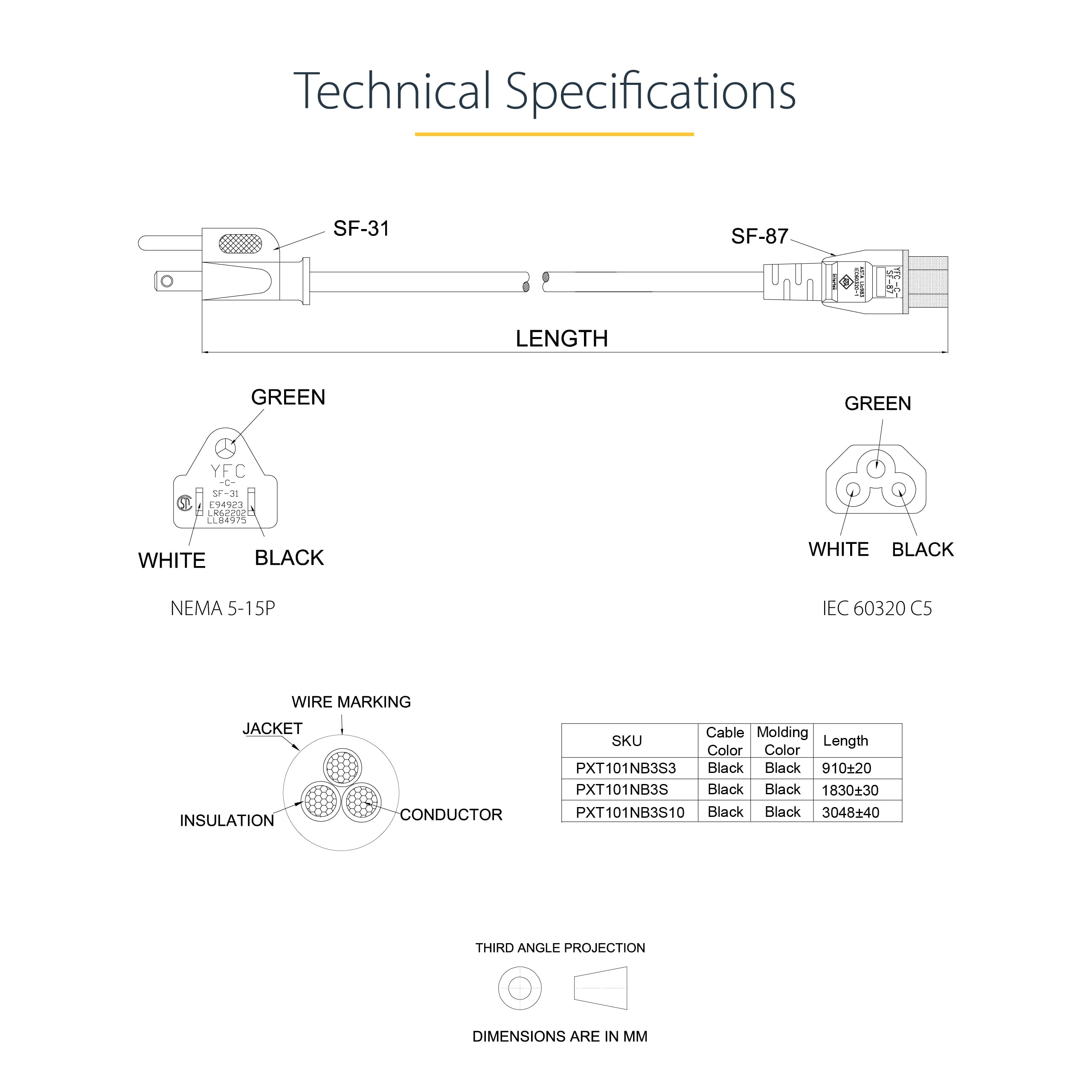 Startech PXT101NB3S 6ft Laptop Power Cord Nema 515p To Iec C5 Ac Power Cord For Most Notebooks Po