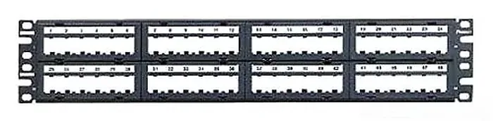 This patch panel features 48 ports, allowing for extensive connectivity options and supporting various applications. Its robust design ensures durability, while the modular configuration facilitates easy installation and future upgrades.