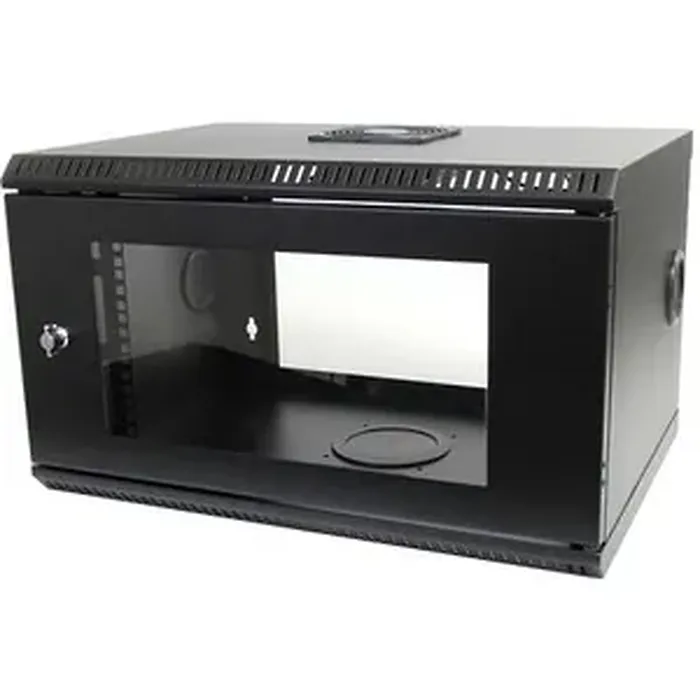 Easily fasten your network and telecom equipment to a wall with this sturdy, lockable wall mount 6U server rack The StarTech.com RK619WALL Wall Mounted 6U Server Rack/Cabinet can be fastened to most types of walls and features a sturdy, compact design that can be positioned almost anywhere without wasting valuable floor space. This equipment rack offers 6U of storage space and is designed to accommodate 19-inch (wide) servers, networking and telecom equipment. The rack features a 12cm fan, with ventilation positioned above and below the front panel glass door, helping to keep dust out of the rack while ensuring a cool operating environment for your valuable equipment. To ensure optimum security and prevent tampering with the enclosed equipment, the cabinet/rack features a lockable, smoked acrylic front door that can be removed entirely or installed to open to the left or right as needed.