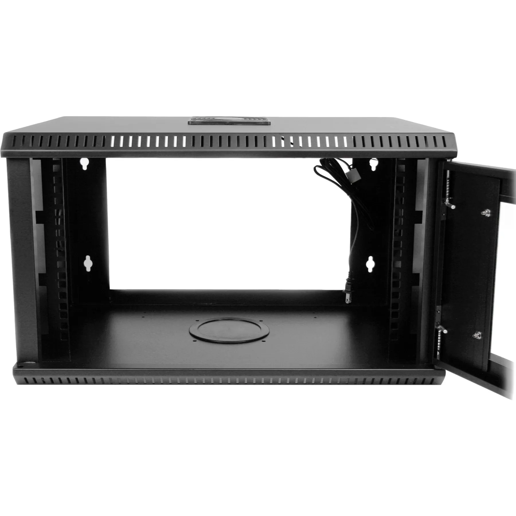 This equipment rack offers 6U of storage space and is designed to accommodate 19-inch (wide) servers, networking and telecom equipment. The rack features a 12cm fan, with ventilation positioned above and below the front panel glass door, helping to keep dust out of the rack while ensuring a cool operating environment for your valuable equipment.