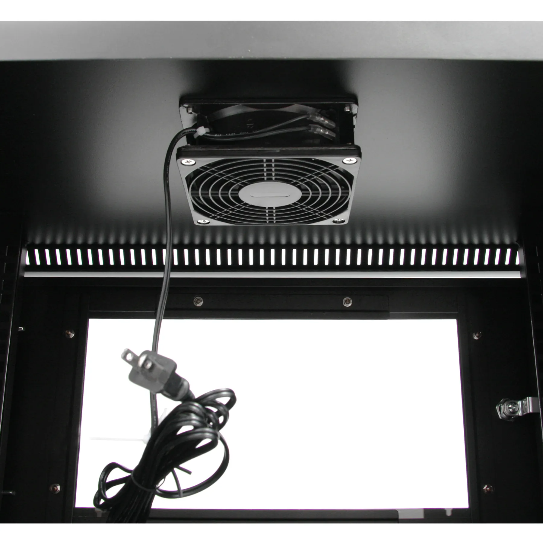 To ensure optimum security and prevent tampering with the enclosed equipment, the cabinet/rack features a lockable, smoked acrylic front door that can be removed entirely or installed to open to the left or right as needed.