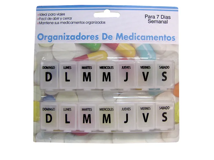 There will be no problems making sure that elderly parents or grandparents get their recommended medication with this set. Package includes 2 divided and labeled pill cases. Each section is designed to hold pills for one day. Sections are marked for each day of the week. Package includes 2 6" x 1 1/2" plastic cases. Comes packaged in a blister pack.