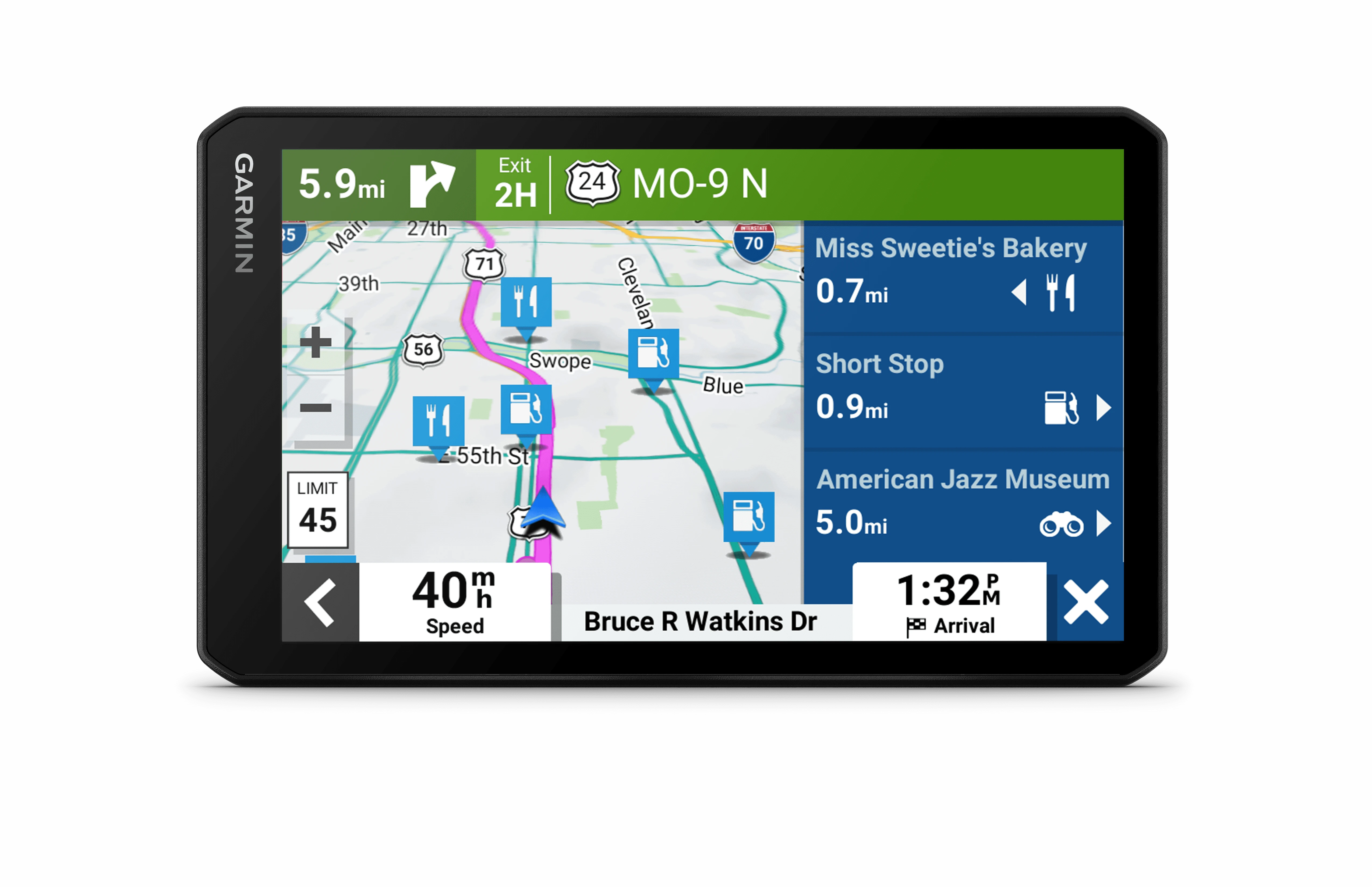 • Designed to add vehicle-friendly GPS navigation with added bonus of built-in dash cam on flip side (some jurisdictions regulate or prohibit use of camera function; user should know and comply with applicable laws and rights to privacy in jurisdictions);• Bluetooth(R) connectivity for hands-free calling; pairs with free Garmin Drive(TM) app on compatible smartphone to see text messages and other notifications displayed on navigator's screen;• Large, color TFT capacitive touch screen shows route and detailed maps; 1024 x 600 resolution;• 1080p Full HD dash cam with 140deg field of view continually records on preinstalled memory card; automatically saves videos of incidents; saved video clips automatically upload to secure online Vault to easily view and share via Garmin Drive(TM) app;• Preloaded with North American maps including U.S., Mexico, Canada, Puerto Rico, U.S. Virgin Islands, Cayman Islands, and Bahamas;• Preloaded Tripadvisor(R) traveler ratings, U.S. national parks directory, and millions of latest and popular points of interest from Foursquare(R);• Easy-to-understand, spoken turn-by-turn directions using street names, store names, and recognizable landmarks;• Forward collision and lane departure warnings encourage safer driving; alerts sharp curves, speed changes, etc. help increase driver awareness; certain conditions may impair warning function ;• Up Ahead shows upcoming stops for food, fuel, and other milestones along designated route;• Ability to stay informed with live traffic, weather, fuel prices, and smart notifications when navigator is paired with Garmin Drive(TM) app;• Built-in Wi-Fi(R) keeps maps and software up to date without using computer; on-screen cues show when new updates are available;• Compatible with BC(TM) 50 wireless backup camera (sold separately);• Includes vehicle suction cup mount, preinstalled 16 GB microSD(TM) Card, vehicle power cable, and documentation;