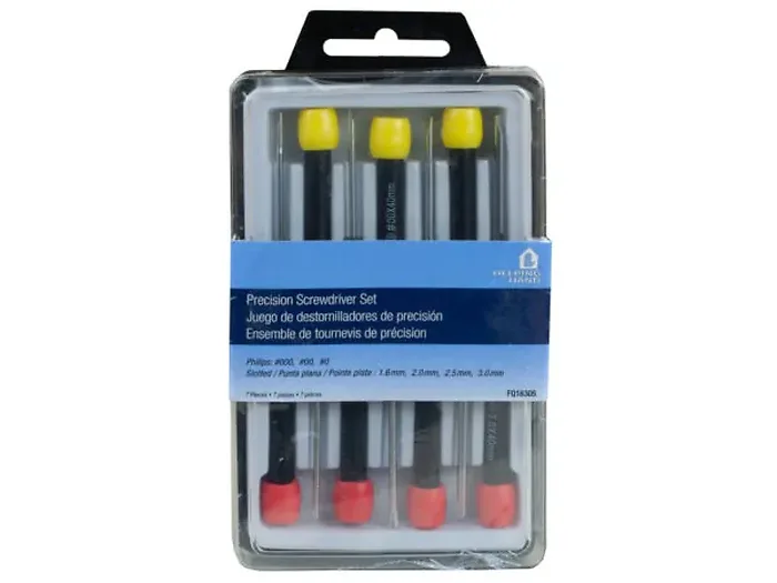 The 7-Piece Precision Screwdriver Set is an essential tool for any small fixing task. This comprehensive set includes slotted screwdrivers in sizes 1.6mm, 2.0mm, 2.5mm, and 3.0mm, making it easy to tackle various projects. Packaged in a durable acrylic case, these screwdrivers are securely organized and ready for use. The compact design is perfect for storage and portability.