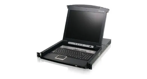 8-Port 17" LCD Combo KVM Switch IOGEAR?s GCL1808 is an integrated LCD console with 8 port KVM (keyboard, video, and mouse) switch that offers secure access to 8 VGA, USB or PS/2 computers. It features a convenient rack mountable sliding / retractable 17" TFT LCD active matrix monitor and keyboard with built-in touchpad for a space-saving and streamlined integration.