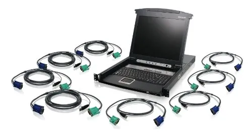 8-Port 17"LCD Combo KVM Switch w/USB KVM cables. GCL1808KITU is an integrated LCD console and 8 port KVM (keyboard, video, and mouse) switch with bundled USB KVM cables that offers secure access to 8 VGA, USB computers.