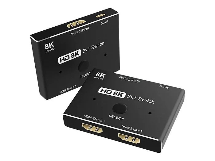 This 8K HDMI switch allows you to connect two HDMI sources and output to one display. It supports resolutions up to 8K at 60Hz and 4K at 120Hz, making it perfect for high-definition gaming and media streaming.