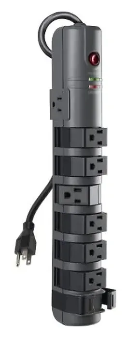 Protect your devices with the 8-Outlet Rotating Surge Protector featuring a 6-foot cord. Designed for professional workstations and home use, this surge protector offers flexibility and convenience with its innovative rotating plug design. You can easily accommodate larger adapters and save space. Our surge protector utilizes advanced design, top-quality construction, and superior circuitry to ensure comprehensive protection against power surges, spikes, and AC contamination.